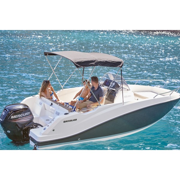 Brand new 2023 Quicksilver Activ 555 Open powered by a Mariner F90ELPT CT-EFi outboard engine with hydraulic steering.