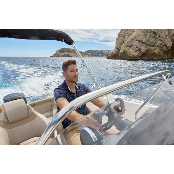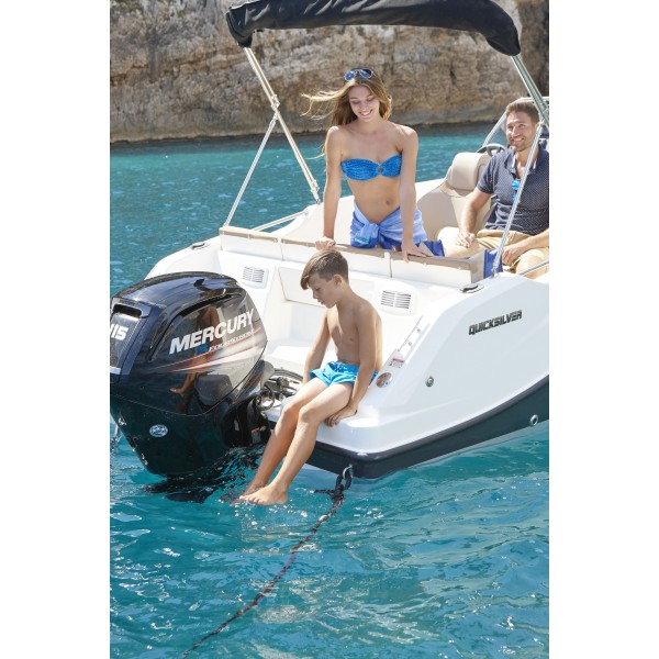 The Activ 555 Open is an ideal boat for fishing trips and a relaxing day’s out. It welcomes up to 6 people aboard and heads for the water with a powerful Mariner 90hp engine. The boat’s sleek design and smart use of space has something for everyone.